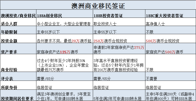 澳洲技術(shù)移民優(yōu)先給在澳洲讀書想留下來的人,學(xué)歷、語言、年齡、工作經(jīng)驗(yàn)等限制多,這里不一一介紹了,有數(shù)據(jù)顯示,這么多年來只有20%的留學(xué)生拿到了澳洲PR,下面主要列舉下澳洲商業(yè)移民的幾大方式。