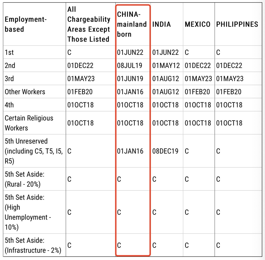 EB-5預留類別(鄉村項目、高失業率項目、基建項目):無排期