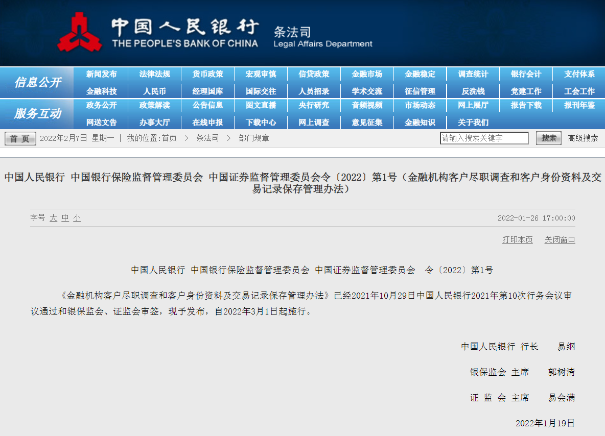 近日,中國人民銀行、中國銀行保險監督管理委員會、中國證券監督管理委員會三部門聯合印發《金融機構客戶盡職調查和客戶身份資料及交易記錄保存管理辦法》。《辦法》第十條提到,商業銀行、農村合作銀行、農村信用合作社、村鎮銀行等金融機構為自然人客戶辦理人民幣(專題)單筆5萬元以上或者外幣等值1萬美元以上現金存取業務的,應當識別并核實客戶身份,了解并登記資金的來源或者用途。