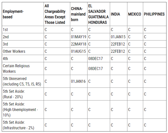 EB-2類別:排期為2019年5月1日,無變化