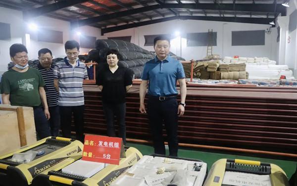 在北閘防汛物資儲備倉庫,羅訊仔細查看了防汛物資儲備情況。